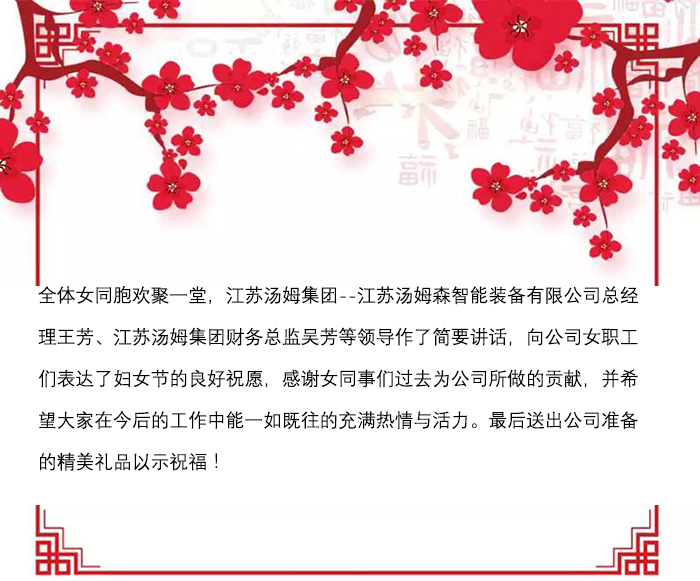 江蘇湯姆集團祝所有女同胞婦女節快樂(lè )!