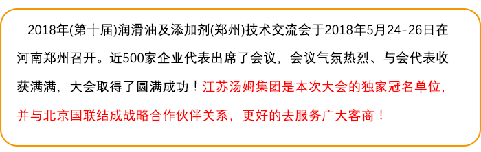 江蘇湯姆集團獨家冠名的2018年(第十屆)潤滑油及添加劑(鄭州)技術(shù)交流會(huì )圓滿(mǎn)落幕!
