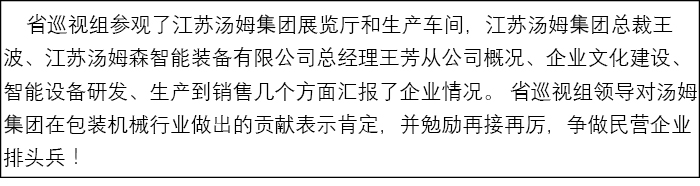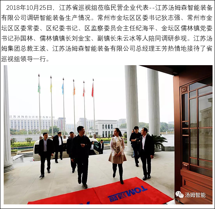 江蘇省巡視組蒞臨民營(yíng)企業(yè)代表--江蘇湯姆集團調研參觀(guān)!