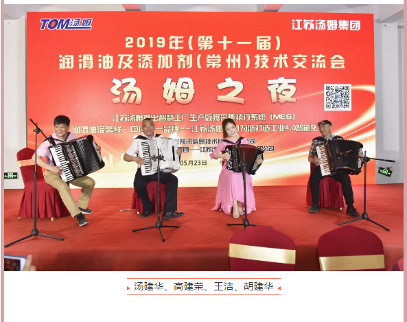 江蘇湯姆集團熱烈祝賀2019年(第十一屆)潤滑油及添加劑(常州)技術(shù)交流會(huì )隆重召開(kāi)。湯姆之夜,群情激昂