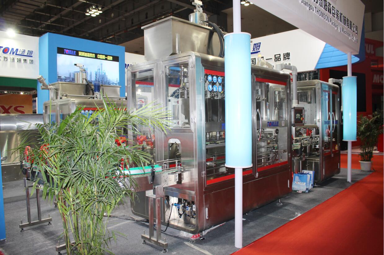 江蘇湯姆集團在展會(huì )現場(chǎng)展示了全自動(dòng)稱(chēng)重灌裝機、稱(chēng)重式灌裝旋蓋一體機、快裝式全自動(dòng)回轉式旋蓋機、廣口桶稱(chēng)重灌裝機、廣口桶壓蓋機、噸桶稱(chēng)重灌裝機、開(kāi)箱機、裝箱機、封箱機、供棧機、抓桶碼垛機等多系列包裝機械產(chǎn)品。