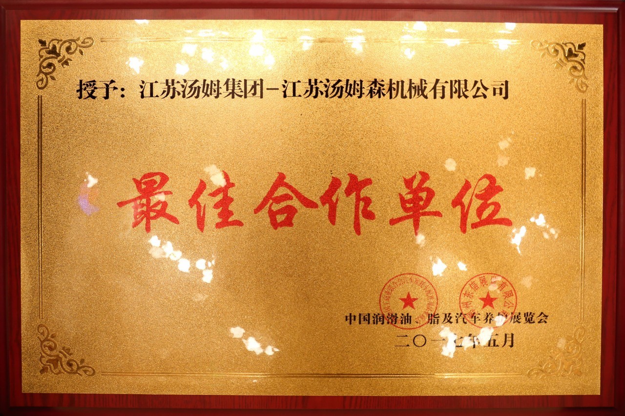 江蘇湯姆集團榮獲潤滑油行業(yè)“佳合作單位”殊榮