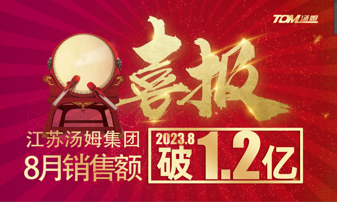 喜報丨江蘇湯姆集團8月銷(xiāo)售額破億元,單月銷(xiāo)售額創(chuàng )歷...